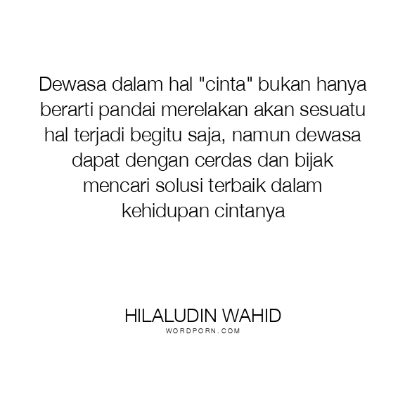 Dewasa dalam hal "cinta" bukan hanya berarti pandai merelakan akan sesuatu hal terjadi begitu saja, namun dewasa dapat dengan cerdas dan bijak mencari solusi terbaik dalam kehidupan cintanya