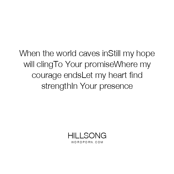 When the world caves inStill my hope will clingTo Your promiseWhere my courage endsLet my heart find strengthIn Your presence