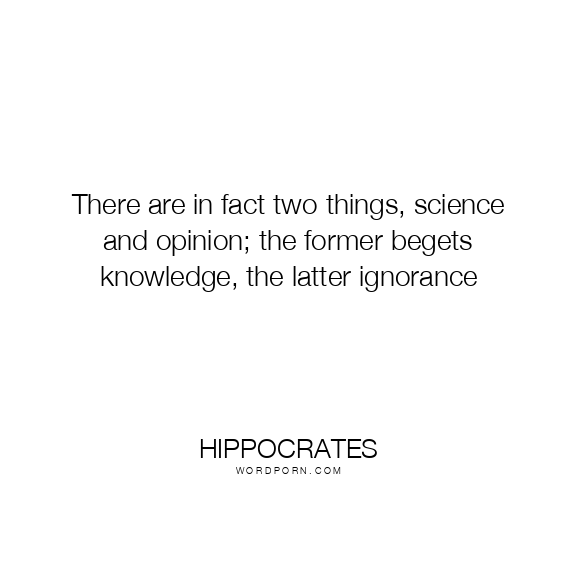 There are in fact two things, science and opinion; the former begets knowledge, the latter ignorance