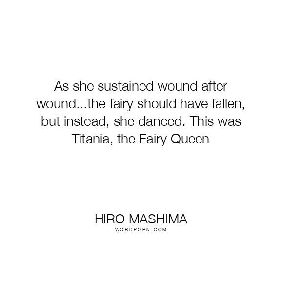 As she sustained wound after wound...the fairy should have fallen, but instead, she danced. This was Titania, the Fairy Queen