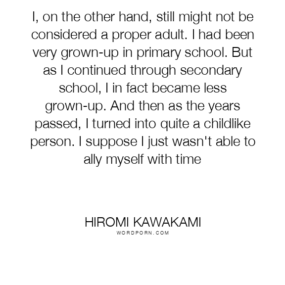I, on the other hand, still might not be considered a proper adult. I had been very grown-up in primary school. But as I continued through secondary school, I in fact became less grown-up. And then as the years passed, I turned into quite a childlike person. I suppose I just wasn't able to ally myself with time
