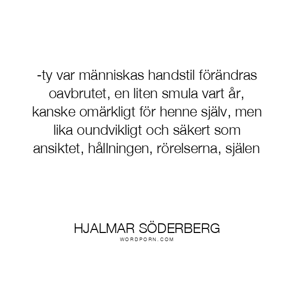 -ty var människas handstil förändras oavbrutet, en liten smula vart år, kanske omärkligt för henne själv, men lika oundvikligt och säkert som ansiktet, hållningen, rörelserna, själen