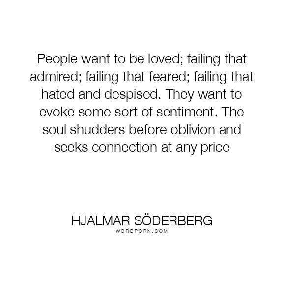 People want to be loved; failing that admired; failing that feared; failing that hated and despised. They want to evoke some sort of sentiment. The soul shudders before oblivion and seeks connection at any price