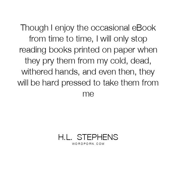 Though I enjoy the occasional eBook from time to time, I will only stop reading books printed on paper when they pry them from my cold, dead, withered hands, and even then, they will be hard pressed to take them from me
