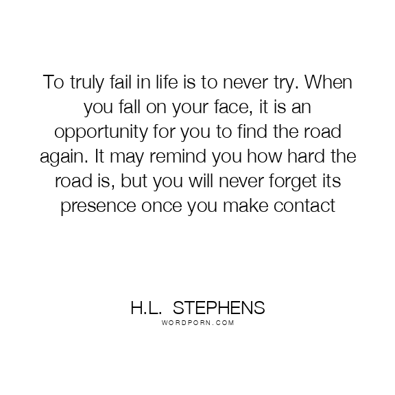 To truly fail in life is to never try. When you fall on your face, it is an opportunity for you to find the road again. It may remind you how hard the road is, but you will never forget its presence once you make contact