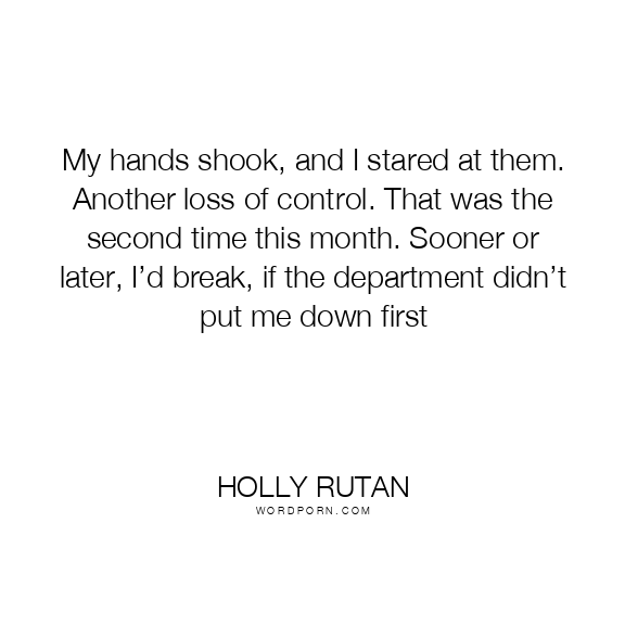 My hands shook, and I stared at them. Another loss of control. That was the second time this month. Sooner or later, I’d break, if the department didn’t put me down first