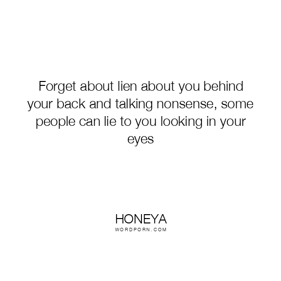 Forget about lien about you behind your back and talking nonsense, some people can lie to you looking in your eyes