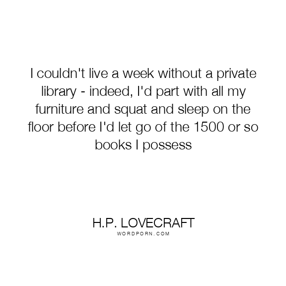 I couldn't live a week without a private library - indeed, I'd part with all my furniture and squat and sleep on the floor before I'd let go of the 1500 or so books I possess