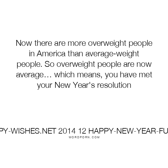 Now there are more overweight people in America than average-weight people. So overweight people are now average… which means, you have met your New Year's resolution