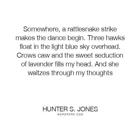 Somewhere, a rattlesnake strike makes the dance begin. Three hawks float in the light blue sky overhead. Crows caw and the sweet seduction of lavender fills my head. And she waltzes through my thoughts