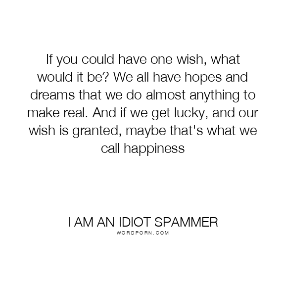If you could have one wish, what would it be? We all have hopes and dreams that we do almost anything to make real. And if we get lucky, and our wish is granted, maybe that's what we call happiness