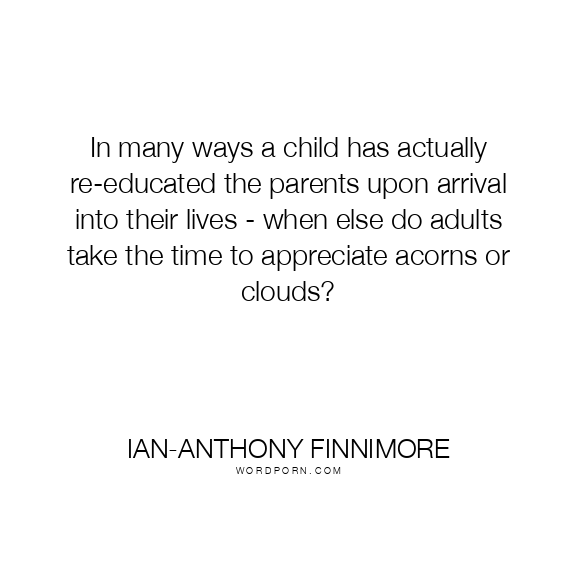 In many ways a child has actually re-educated the parents upon arrival into their lives - when else do adults take the time to appreciate acorns or clouds?