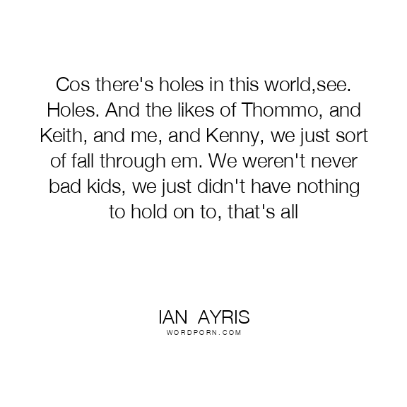 Cos there's holes in this world,see. Holes. And the likes of Thommo, and Keith, and me, and Kenny, we just sort of fall through em. We weren't never bad kids, we just didn't have nothing to hold on to, that's all