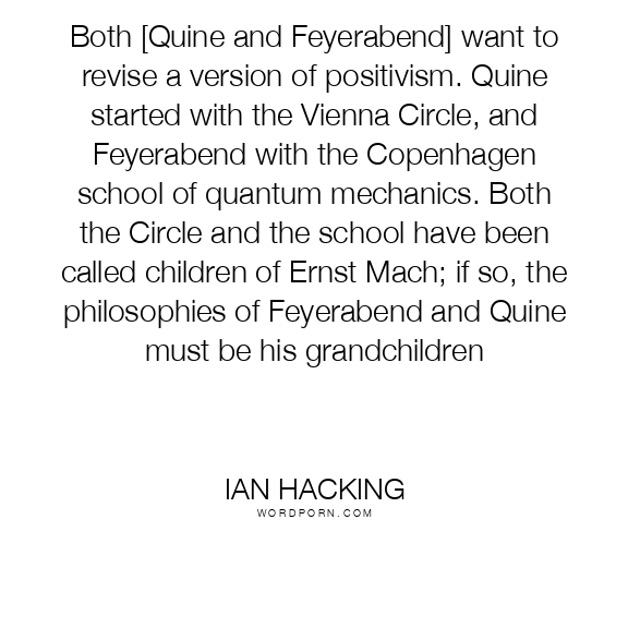 Both [Quine and Feyerabend] want to revise a version of positivism. Quine started with the Vienna Circle, and Feyerabend with the Copenhagen school of quantum mechanics. Both the Circle and the school have been called children of Ernst Mach; if so, the philosophies of Feyerabend and Quine must be his grandchildren