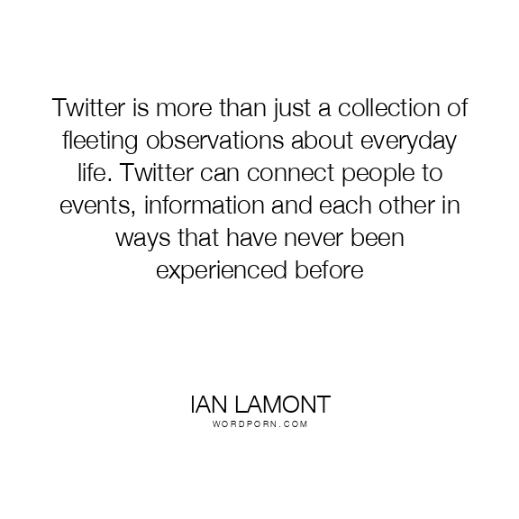 Twitter is more than just a collection of fleeting observations about everyday life. Twitter can connect people to events, information and each other in ways that have never been experienced before