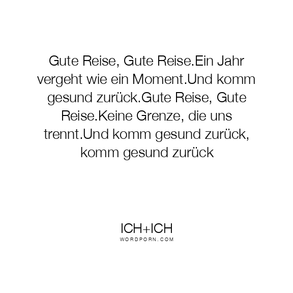 Gute Reise, Gute Reise.Ein Jahr vergeht wie ein Moment.Und komm gesund zurück.Gute Reise, Gute Reise.Keine Grenze, die uns trennt.Und komm gesund zurück, komm gesund zurück