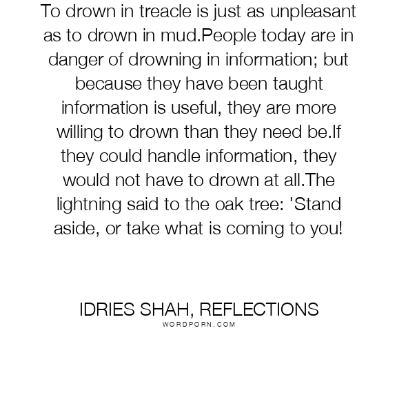 To drown in treacle is just as unpleasant as to drown in mud.People today are in danger of drowning in information; but because they have been taught information is useful, they are more willing to drown than they need be.If they could handle information, they would not have to drown at all.The lightning said to the oak tree: 'Stand aside, or take what is coming to you!