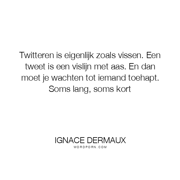 Copy Image Twitteren is eigenlijk zoals vissen. Een tweet is een vislijn met aas. En dan moet je wachten tot iemand toehapt. Soms lang, soms kort Moms Typewriter A A SAVE THIS IMAGE