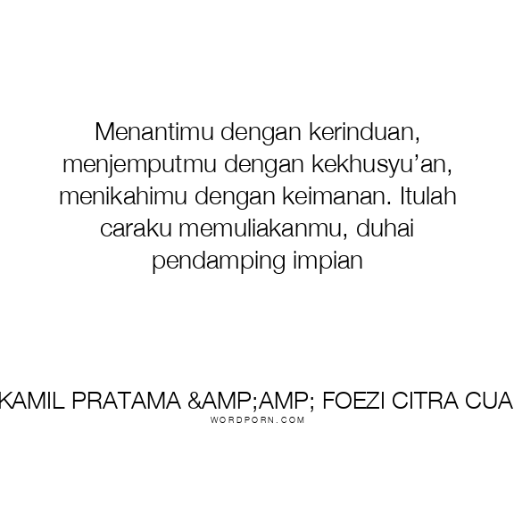 Menantimu dengan kerinduan, menjemputmu dengan kekhusyu’an, menikahimu dengan keimanan. Itulah caraku memuliakanmu, duhai pendamping impian