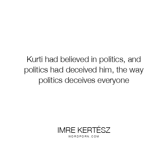 Kurti had believed in politics, and politics had deceived him, the way politics deceives everyone