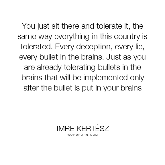 You just sit there and tolerate it, the same way everything in this country is tolerated. Every deception, every lie, every bullet in the brains. Just as you are already tolerating bullets in the brains that will be implemented only after the bullet is put in your brains