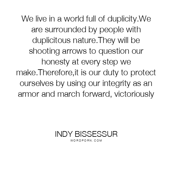 We live in a world full of duplicity.We are surrounded by people with duplicitous nature.They will be shooting arrows to question our honesty at every step we make.Therefore,it is our duty to protect ourselves by using our integrity as an armor and march forward, victoriously
