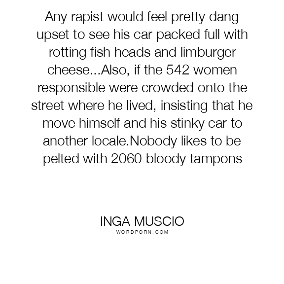 Any rapist would feel pretty dang upset to see his car packed full with rotting fish heads and limburger cheese...Also, if the 542 women responsible were crowded onto the street where he lived, insisting that he move himself and his stinky car to another locale.Nobody likes to be pelted with 2060 bloody tampons