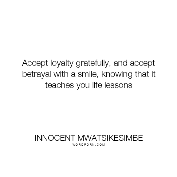 Accept loyalty gratefully, and accept betrayal with a smile, knowing that it teaches you life lessons