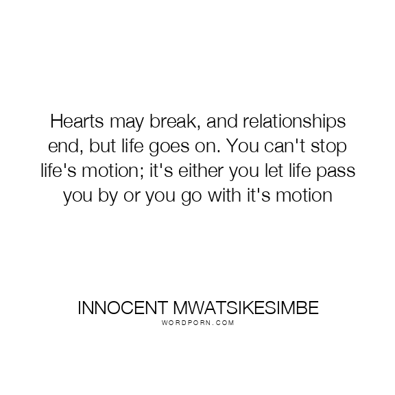 Hearts may break, and relationships end, but life goes on. You can't stop life's motion; it's either you let life pass you by or you go with it's motion