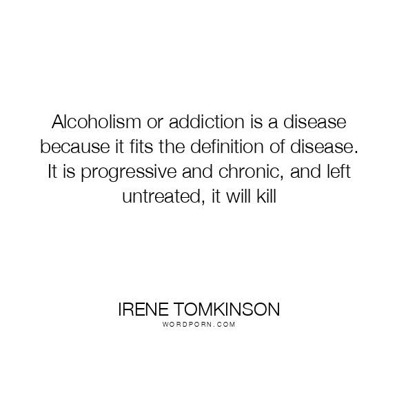 Alcoholism or addiction is a disease because it fits the definition of disease. It is progressive and chronic, and left untreated, it will kill