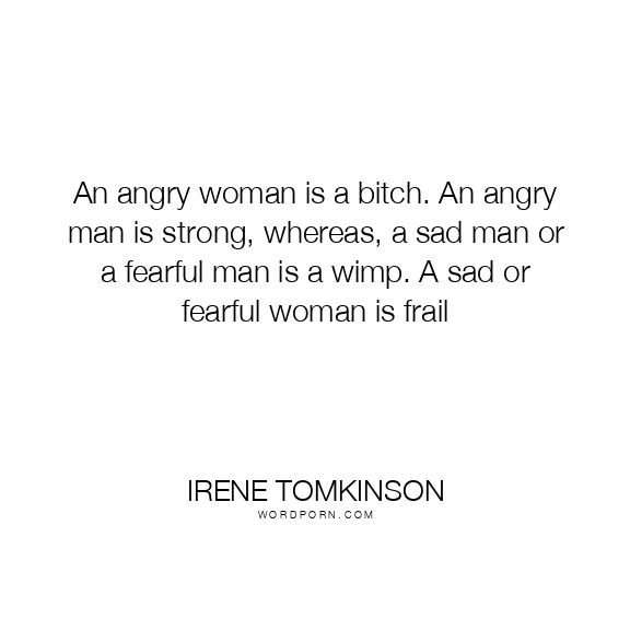 An angry woman is a bitch. An angry man is strong, whereas, a sad man or a fearful man is a wimp. A sad or fearful woman is frail