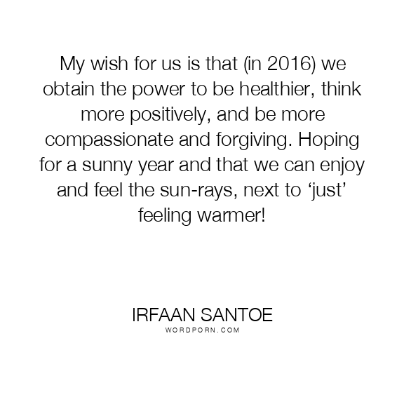 My wish for us is that (in 2016) we obtain the power to be healthier, think more positively, and be more compassionate and forgiving. Hoping for a sunny year and that we can enjoy and feel the sun-rays, next to ‘just’ feeling warmer!