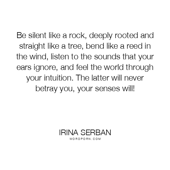 Be silent like a rock, deeply rooted and straight like a tree, bend like a reed in the wind, listen to the sounds that your ears ignore, and feel the world through your intuition. The latter will never betray you, your senses will!