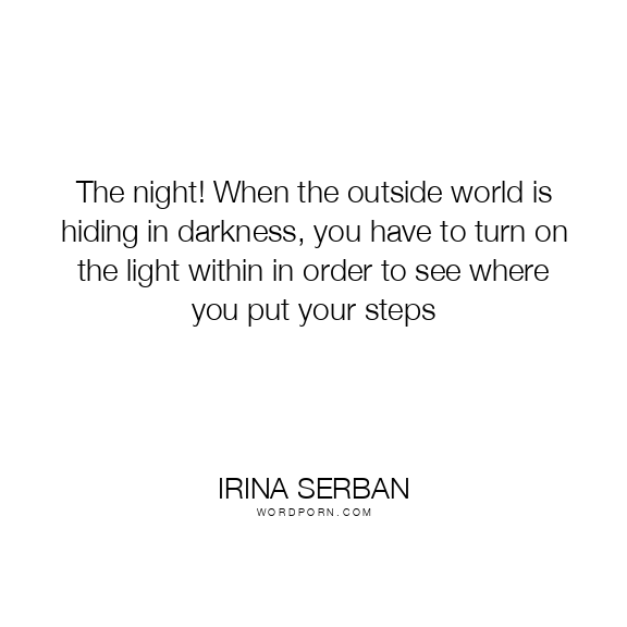 The night! When the outside world is hiding in darkness, you have to turn on the light within in order to see where you put your steps