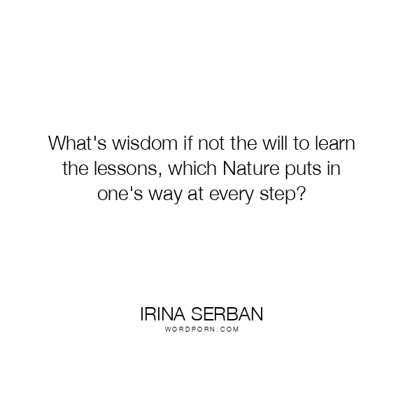 What's wisdom if not the will to learn the lessons, which Nature puts in one's way at every step?