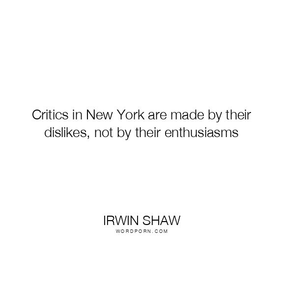 Critics in New York are made by their dislikes, not by their enthusiasms