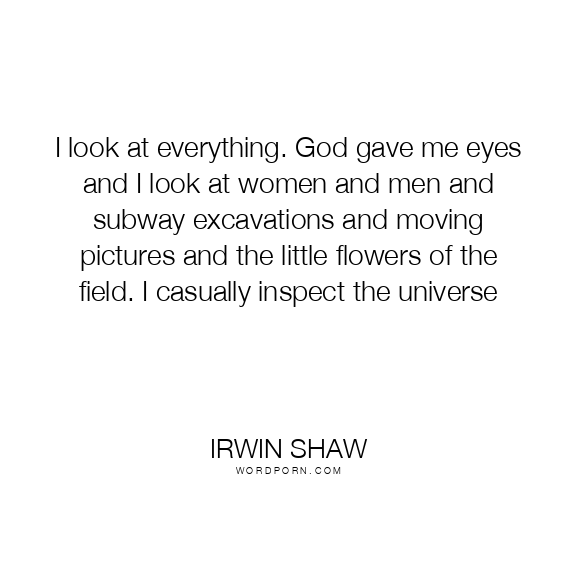 I look at everything. God gave me eyes and I look at women and men and subway excavations and moving pictures and the little flowers of the field. I casually inspect the universe