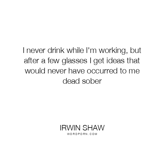 I never drink while I'm working, but after a few glasses I get ideas that would never have occurred to me dead sober