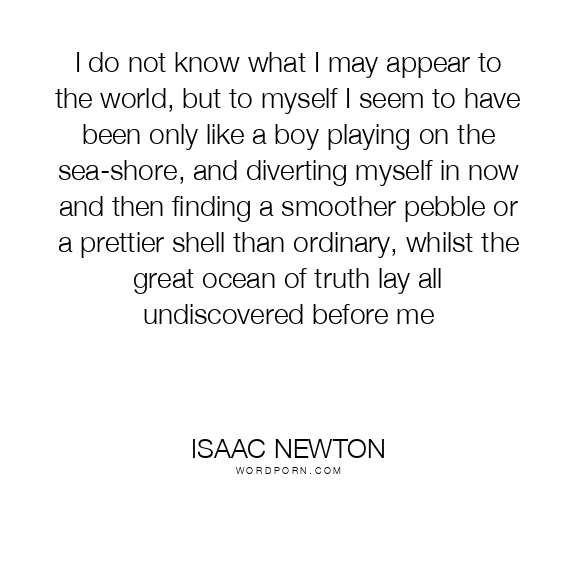 I do not know what I may appear to the world, but to myself I seem to have been only like a boy playing on the sea-shore, and diverting myself in now and then finding a smoother pebble or a prettier shell than ordinary, whilst the great ocean of truth lay all undiscovered before me