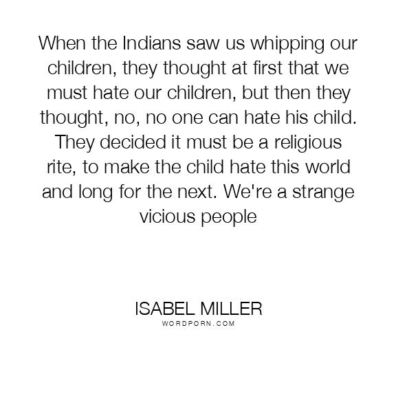 When the Indians saw us whipping our children, they thought at first that we must hate our children, but then they thought, no, no one can hate his child. They decided it must be a religious rite, to make the child hate this world and long for the next. We're a strange vicious people
