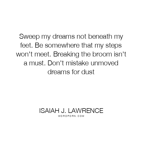 Copy Image Sweep my dreams not beneath my feet. Be somewhere that my steps won't meet. Breaking the broom isn't a must. Don't mistake unmoved dreams for dust Moms Typewriter A A SAVE THIS IMAGE