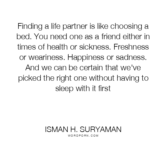 Finding a life partner is like choosing a bed. You need one as a friend either in times of health or sickness. Freshness or weariness. Happiness or sadness. And we can be certain that we've picked the right one without having to sleep with it first