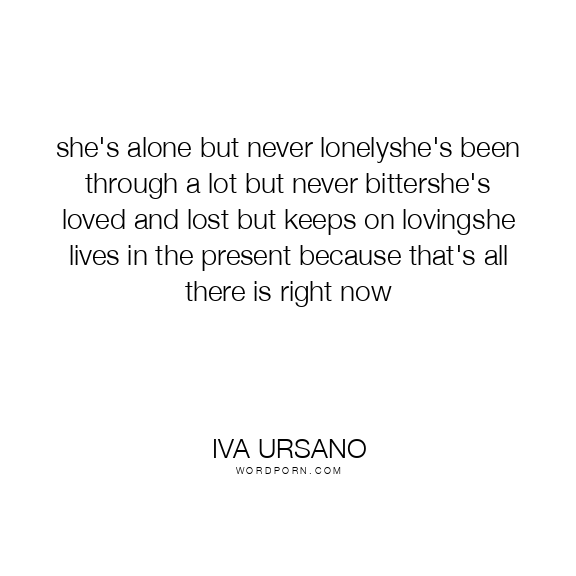 she's alone but never lonelyshe's been through a lot but never bittershe's loved and lost but keeps on lovingshe lives in the present because that's all there is right now