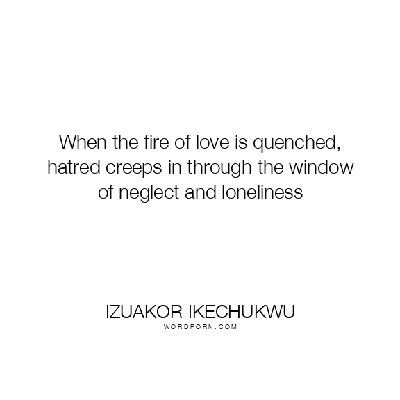 When the fire of love is quenched, hatred creeps in through the window of neglect and loneliness