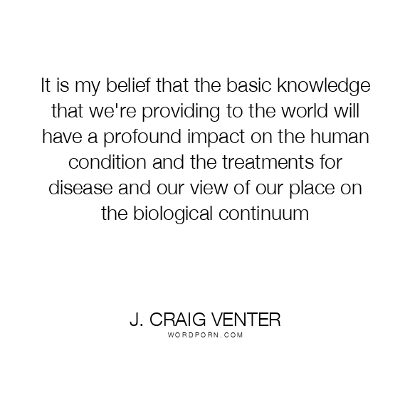 It is my belief that the basic knowledge that we're providing to the world will have a profound impact on the human condition and the treatments for disease and our view of our place on the biological continuum