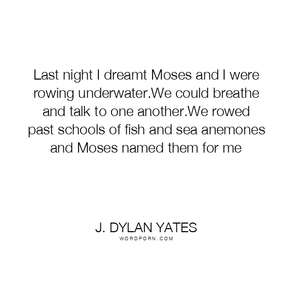 Last night I dreamt Moses and I were rowing underwater.We could breathe and talk to one another.We rowed past schools of fish and sea anemones and Moses named them for me