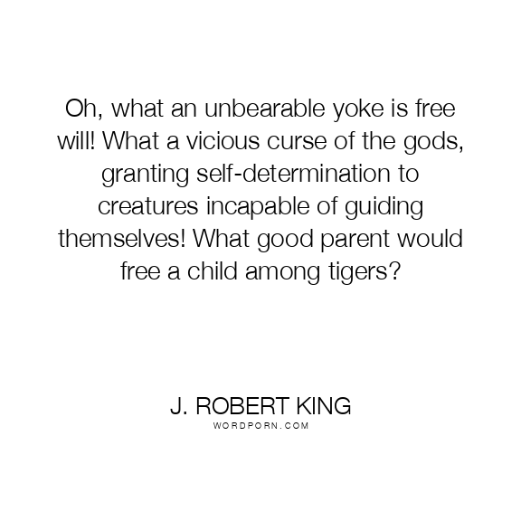 Oh, what an unbearable yoke is free will! What a vicious curse of the gods, granting self-determination to creatures incapable of guiding themselves! What good parent would free a child among tigers?