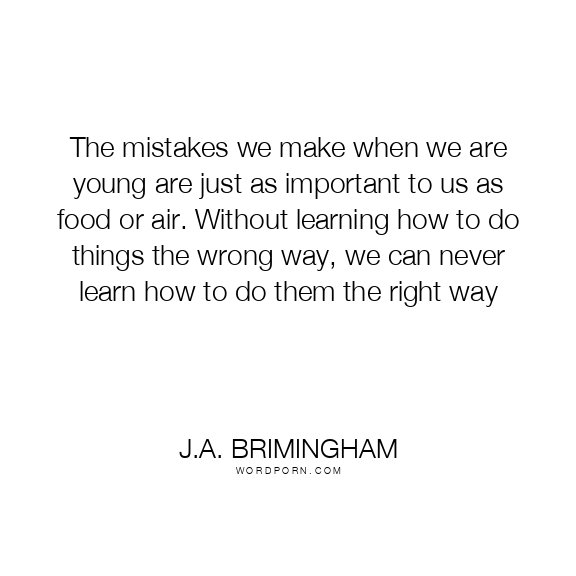 The mistakes we make when we are young are just as important to us as food or air. Without learning how to do things the wrong way, we can never learn how to do them the right way