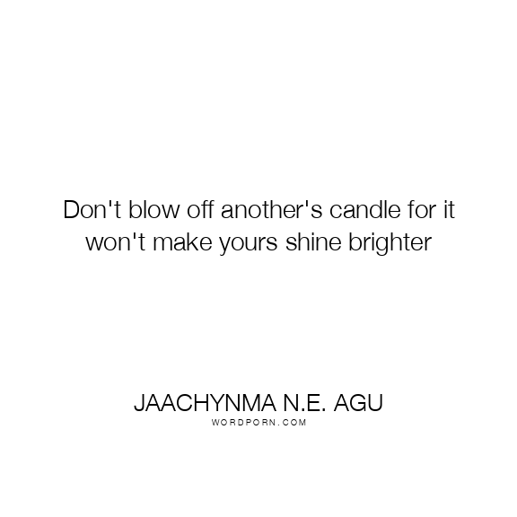 Don't blow off another's candle for it won't make yours shine brighter