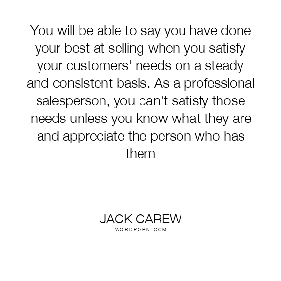 You will be able to say you have done your best at selling when you satisfy your customers' needs on a steady and consistent basis. As a professional salesperson, you can't satisfy those needs unless you know what they are and appreciate the person who has them